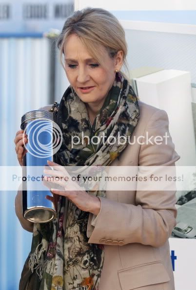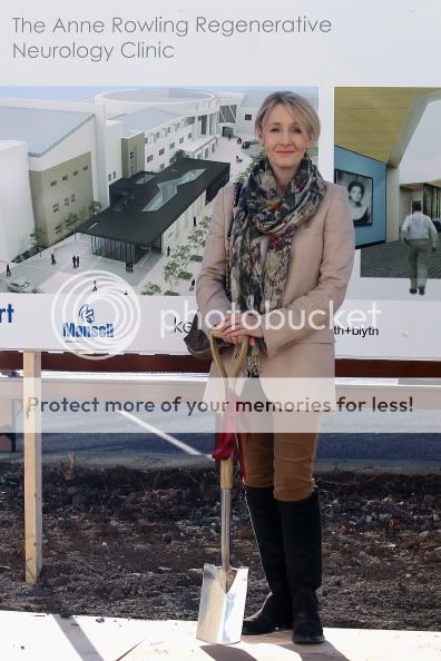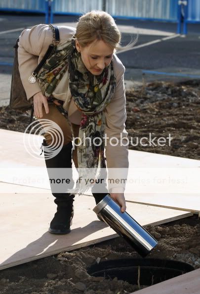 เจ.เค.โรว์ลิ่ง ผู้ประพันธ์ แฮร์รี่ พอตเตอร์ ได้ฝังไทม์แคปซูล ลงพื้นดินเพื่อเป็นสัญญาณของการเริ่มต้นทำงานวิจัยคลีนิค เพื่อผู้ป่วยด้วยโรคเส้นโลหิตในสมองตีบ ณ มหาวิทยาลัยเอดินเบิร์ก ภาพของโจที่มหาวิทยาลัยเอดินเบิร์ก ซึ่งเธอบริจาคเงินไป 10 ล้านปอนด์ ในชื่อของแม่ที่เสียไปแล้วของเธอ