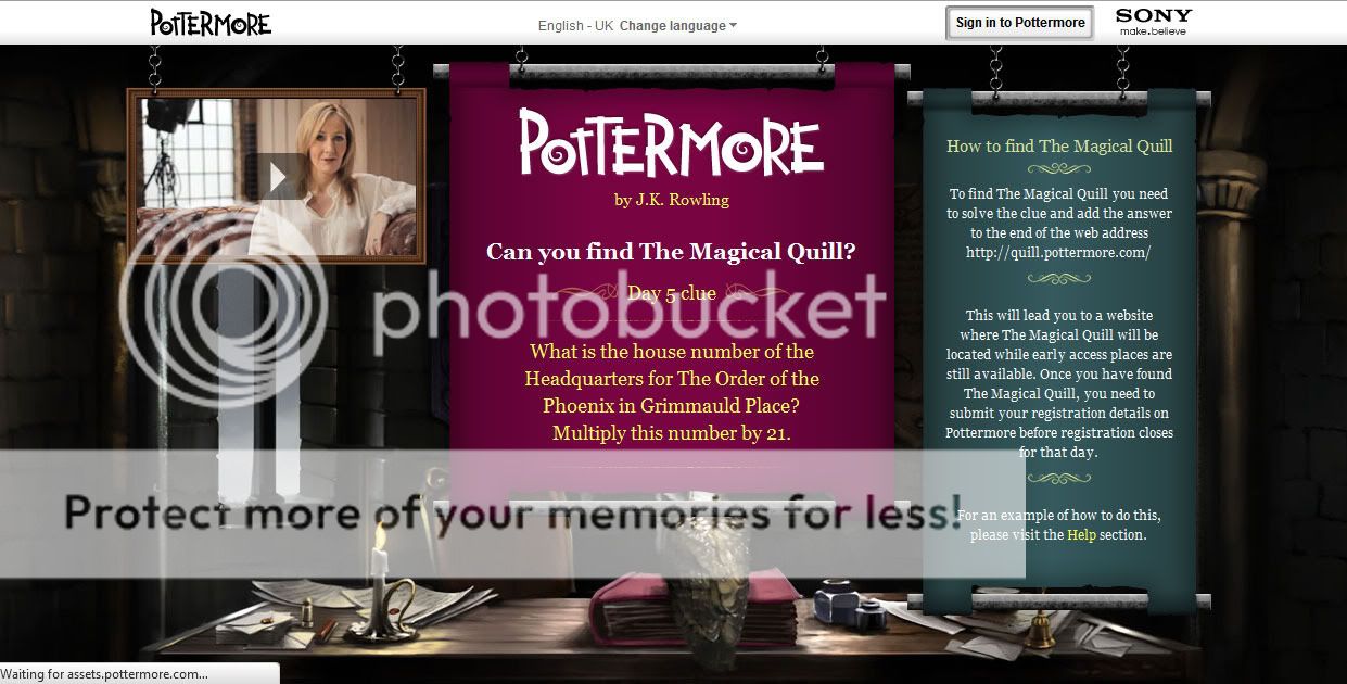 เฉพาะผู้ที่ตอบคำตอบได้เท่านั้น ที่จะได้ค้นพบปากกาขนนกวิเศษด้ามนี้ ด้วยหนังสือ 7 เล่ม 7 วัน และ 7 โอกาส ที่จะให้ใครก็ตามได้เข้าเป็นสมาชิก Pottermore ก่อนใครในรอบทดลอง ( Beta) ซึ่งจะเรียงลำดับหนังสือ 1 เล่ม ต่อ 1 วัน ในช่วงเวลาจำกัด เริ่มต้นจากเล่มแรก แฮร์รี่ พอตเตอร์ กับศิลาอาถรรพ์ เรื่อยไปจนถึงเล่มสุดท้าย แฮร์รี่ พอตเตอร์ กับเครื่องรางยมทูต