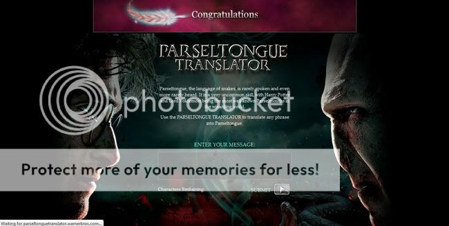 ถ้าคำตอบถูกต้อง ระบบจะพาคุณมาที่หน้า “แปลภาษาพาร์เซล” ของภาพยนตร์แฮร์รี่ พอตเตอร์ กับเครื่องรางยมทูต ภาค 2